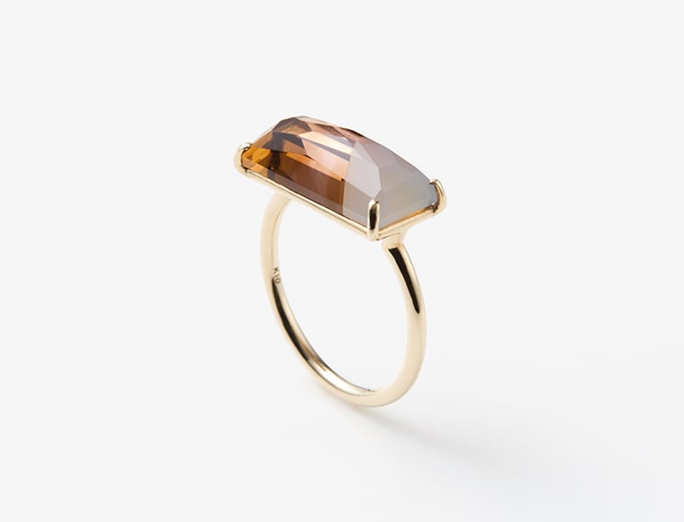 Rectangle Ring〈Smoky Quartz × Cognac Quartz〉