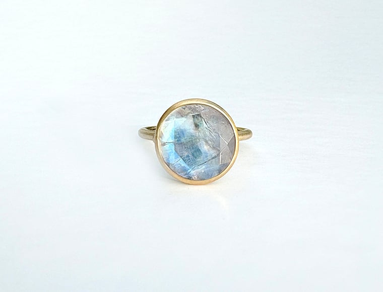 珍しい一点ものの「トルマリン」の入った「ムーンストーン」は見る角度によってインクルージョンが見えたり偏光したり、見惚れる一品。 数あるコレクションの中から、スタイリストさんが選んでくださり8/27日発売のananでご紹介いただいています。 希少な石のため、一点ものです。